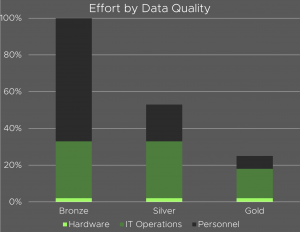 - Gold – Curated and aggregated data: Structured, contextualized, directly analyzable. The total effort required is only around a quarter of the bronze level.