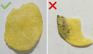 Kartoffelchips sind ein Naturprodukt bei dem Form, Farbe und Dicke von Charge zu Charge variieren. Klassische Bildverarbeitungsverfahren stoßen hier schnell an Grenzen, da sie auf feste Regeln angewiesen sind. Unterschiede in Beleuchtung, Ölanteil oder Bräunung können leicht zu Fehlklassifikationen führen. Eine KI muss lernen, zwischen tolerierbaren Variationen und echten Qualitätsmängeln, wie etwa verbrannten Stellen, dunklen Verfärbungen oder strukturellen Defekten, sicher zu unterscheiden.